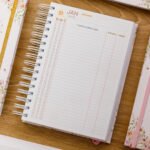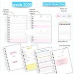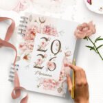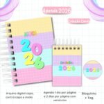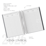 Agenda 2026 com capa dura (rígida) personalizável em laminação fosca ou brilho. Miolo padrão (1 dia por página ou 2 dias por página), papel offset 75g. Acabamento com Wire-o (duplo anel) e elástico ou sem elástico.